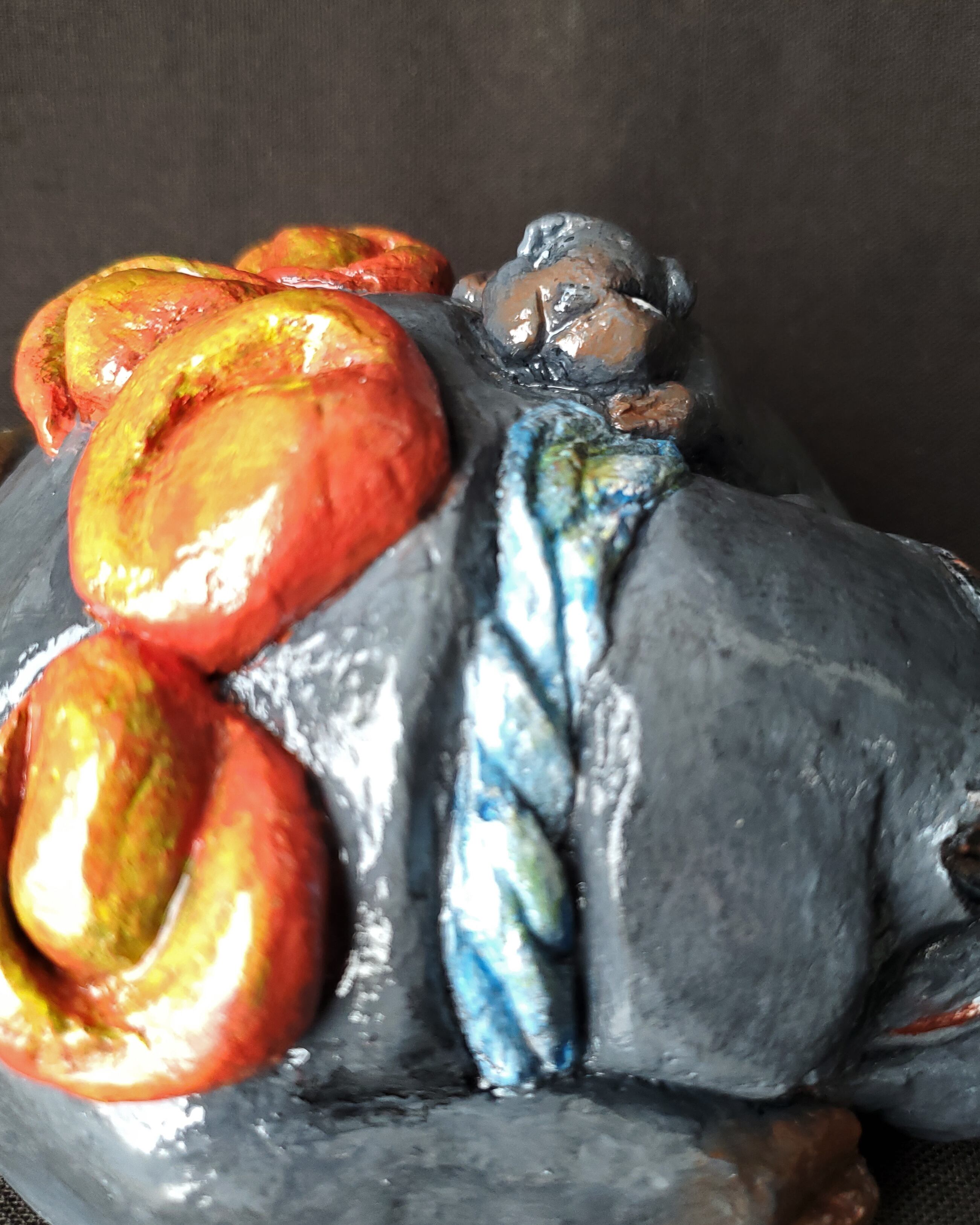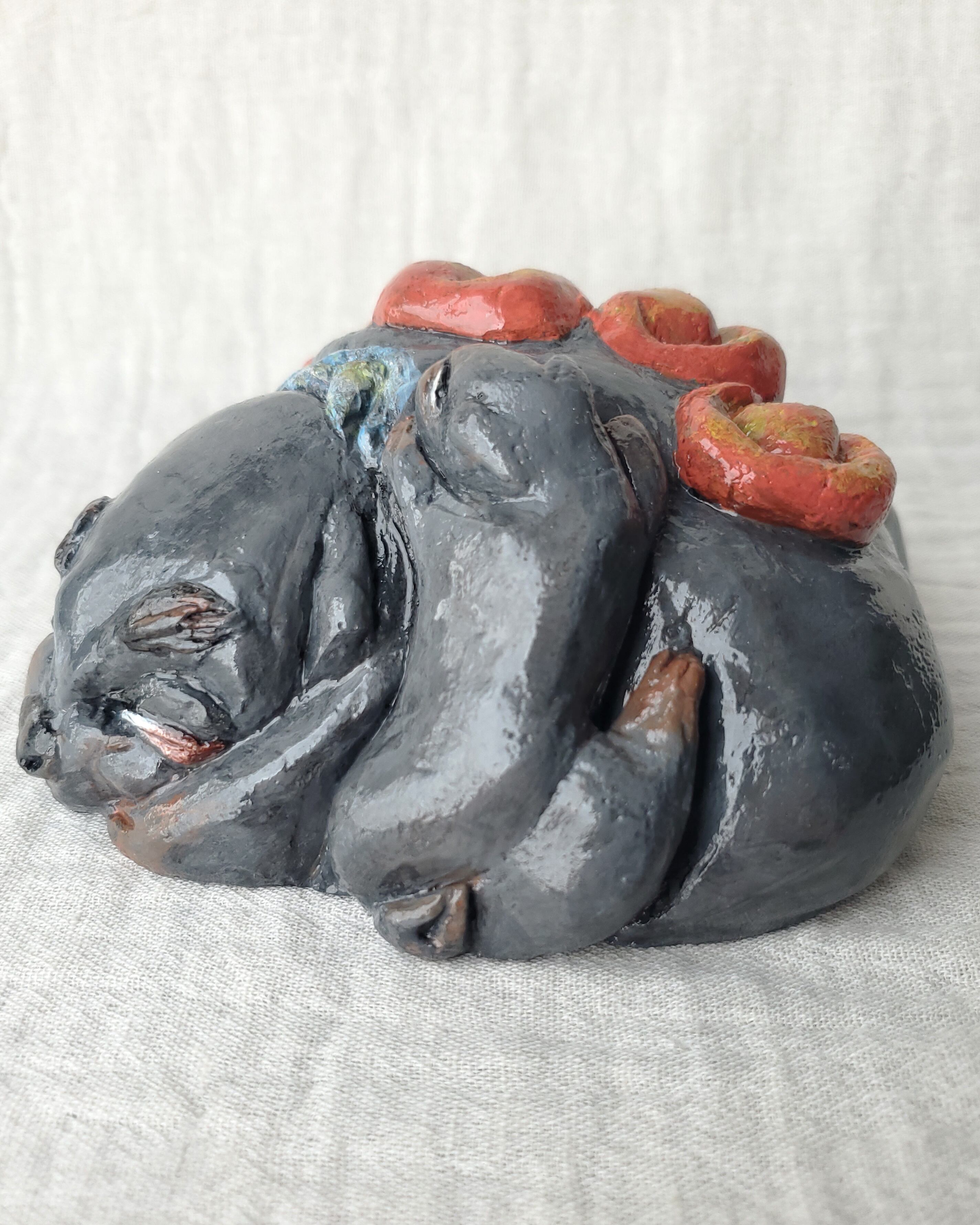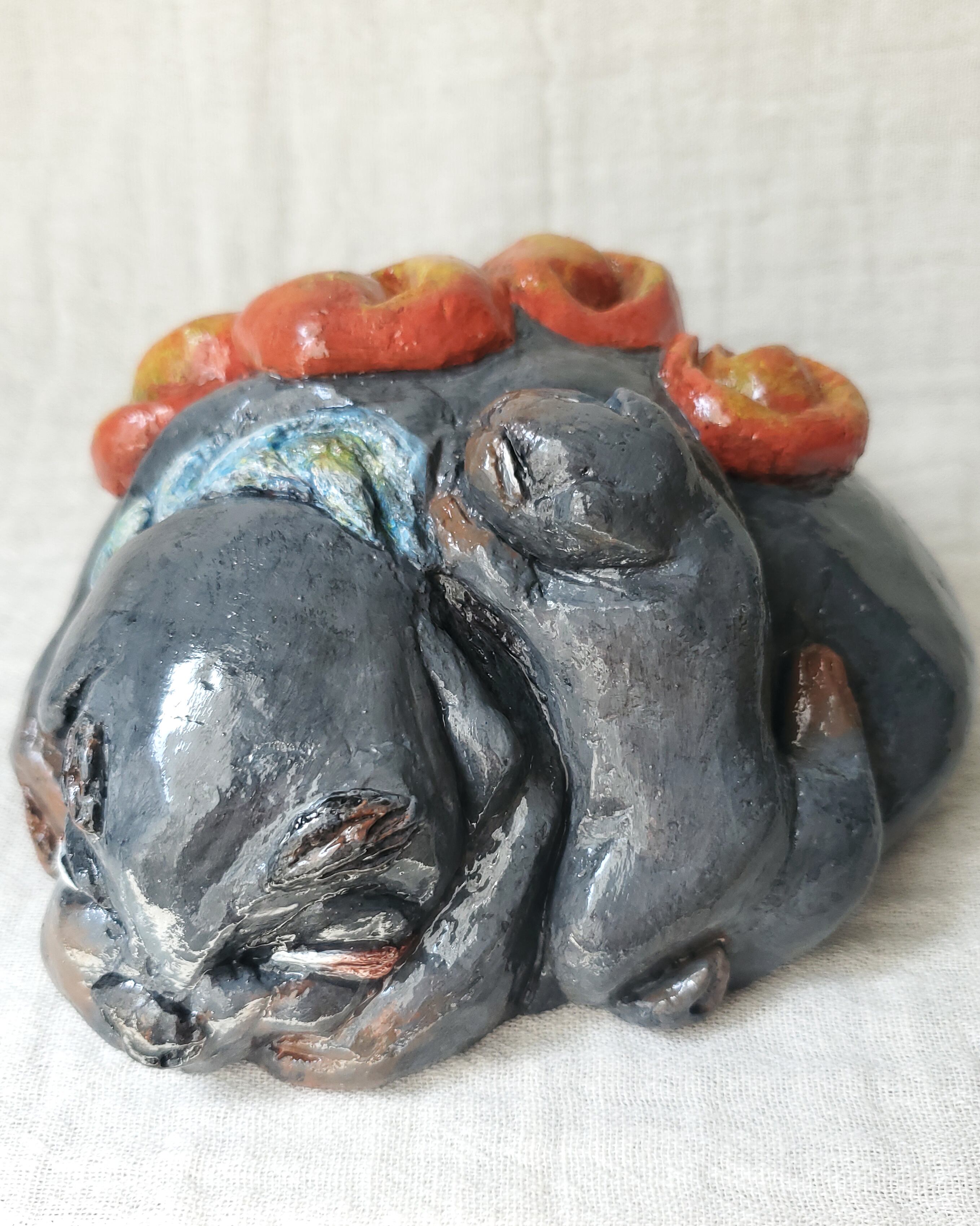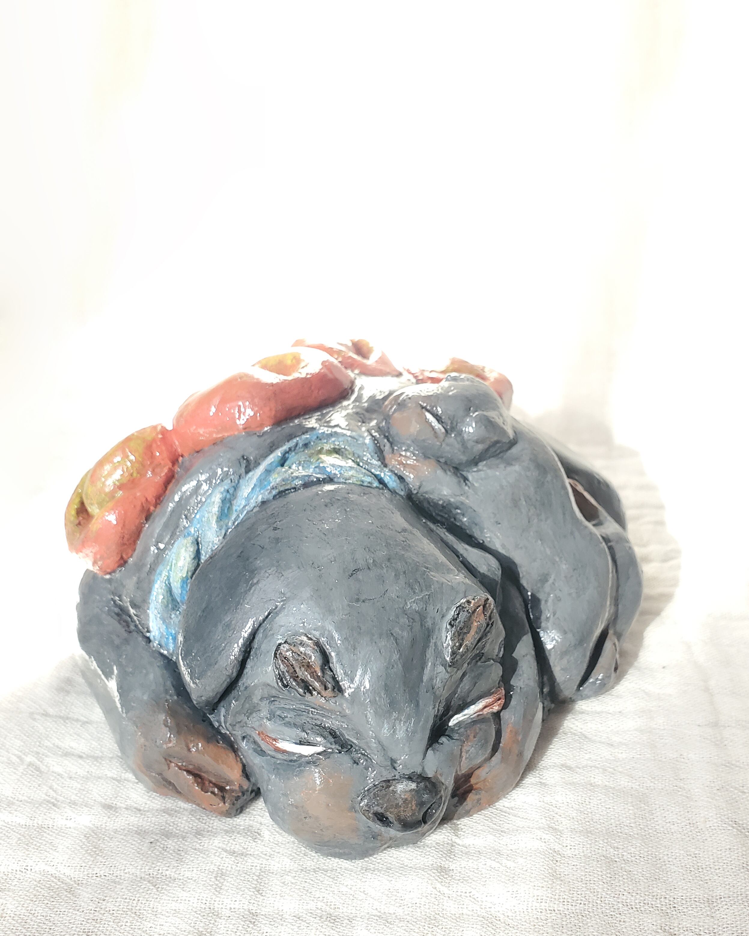 親子のわんこをモチーフにしたモルタルオブジェです。