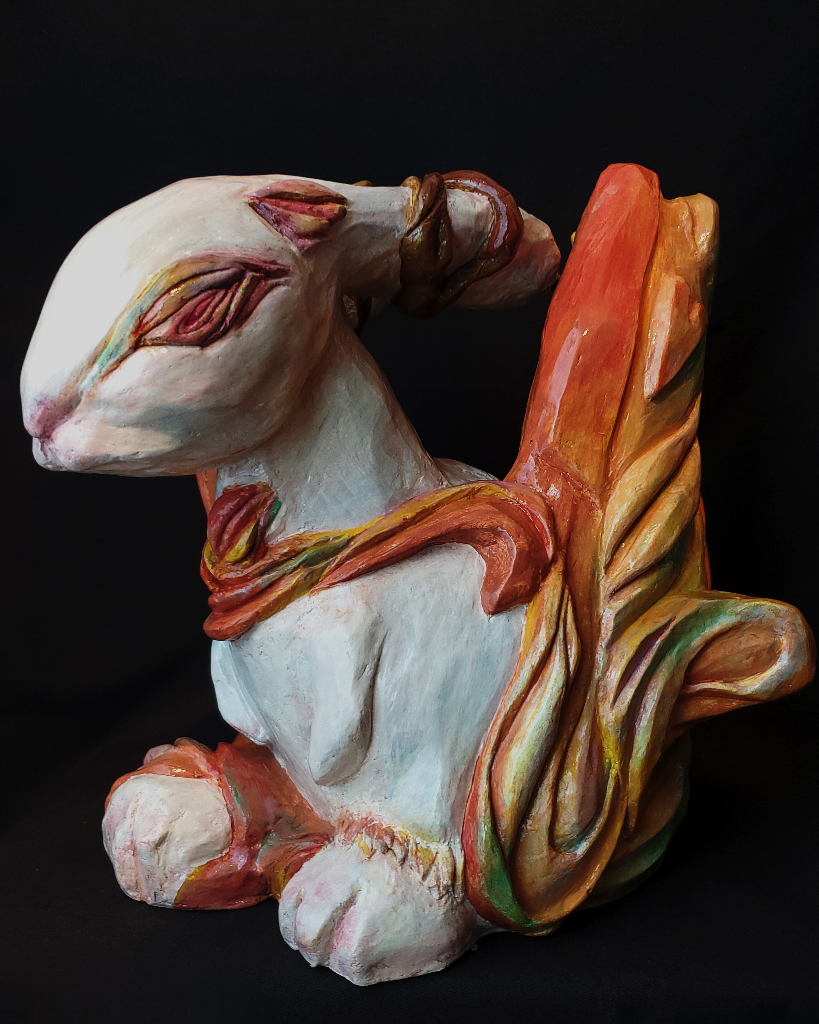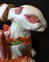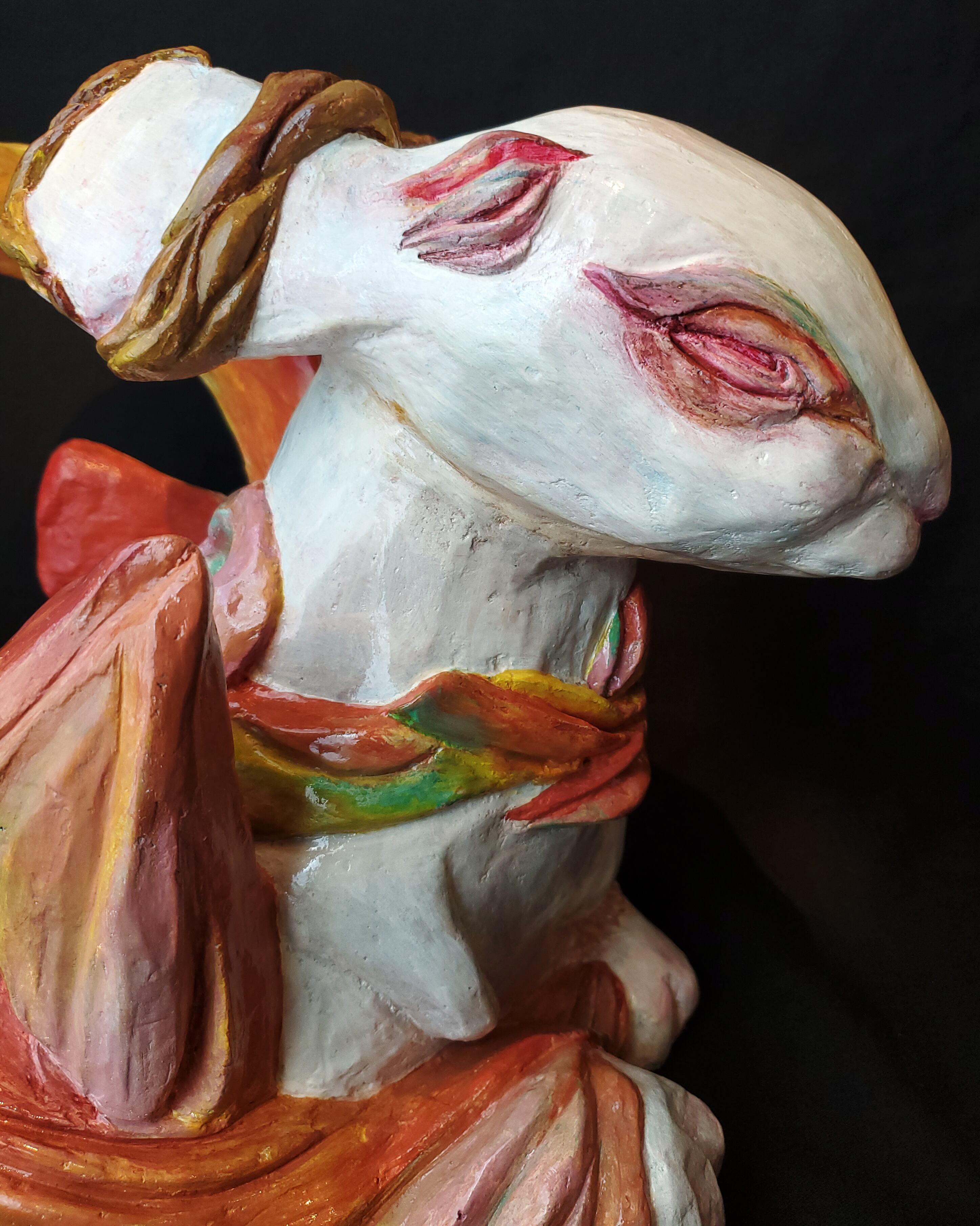 赤く目を泣き腫らして耳をふさぎ逃避するウサギ