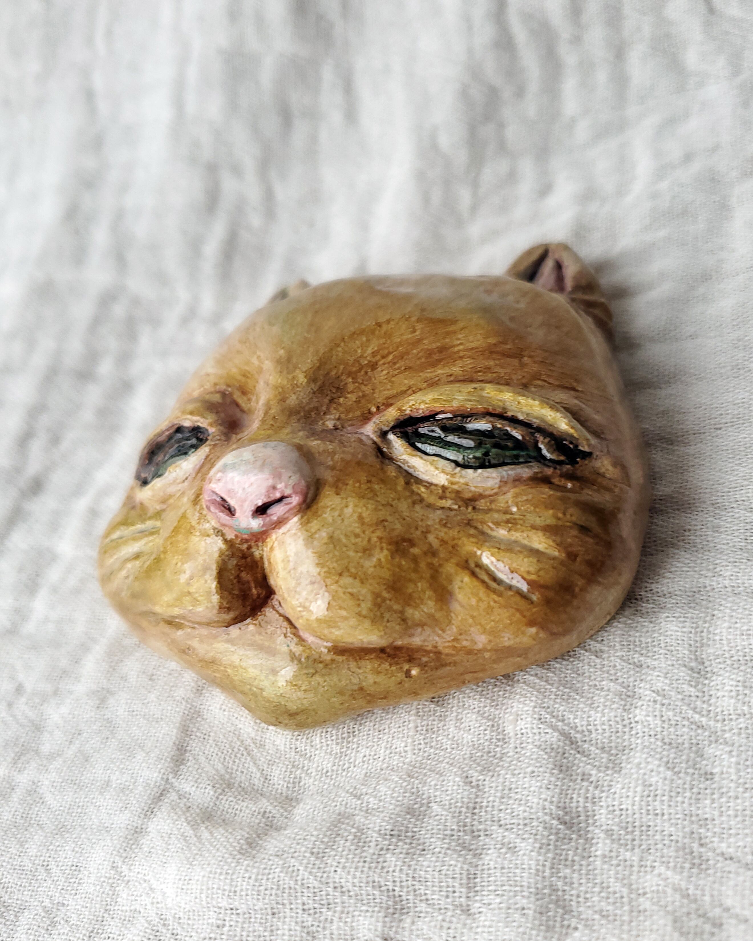 額が広めのネコをモチーフにしたペーパーウェイトです。